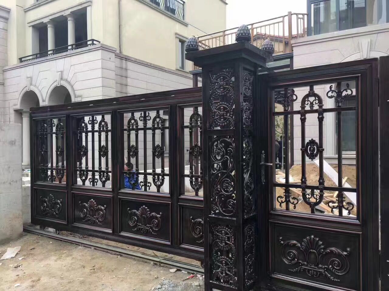 第二種是鋁合金材質的藝術大門,該大門為別墅住宅定制而成,外觀奢華艷麗,使用壽命長久。